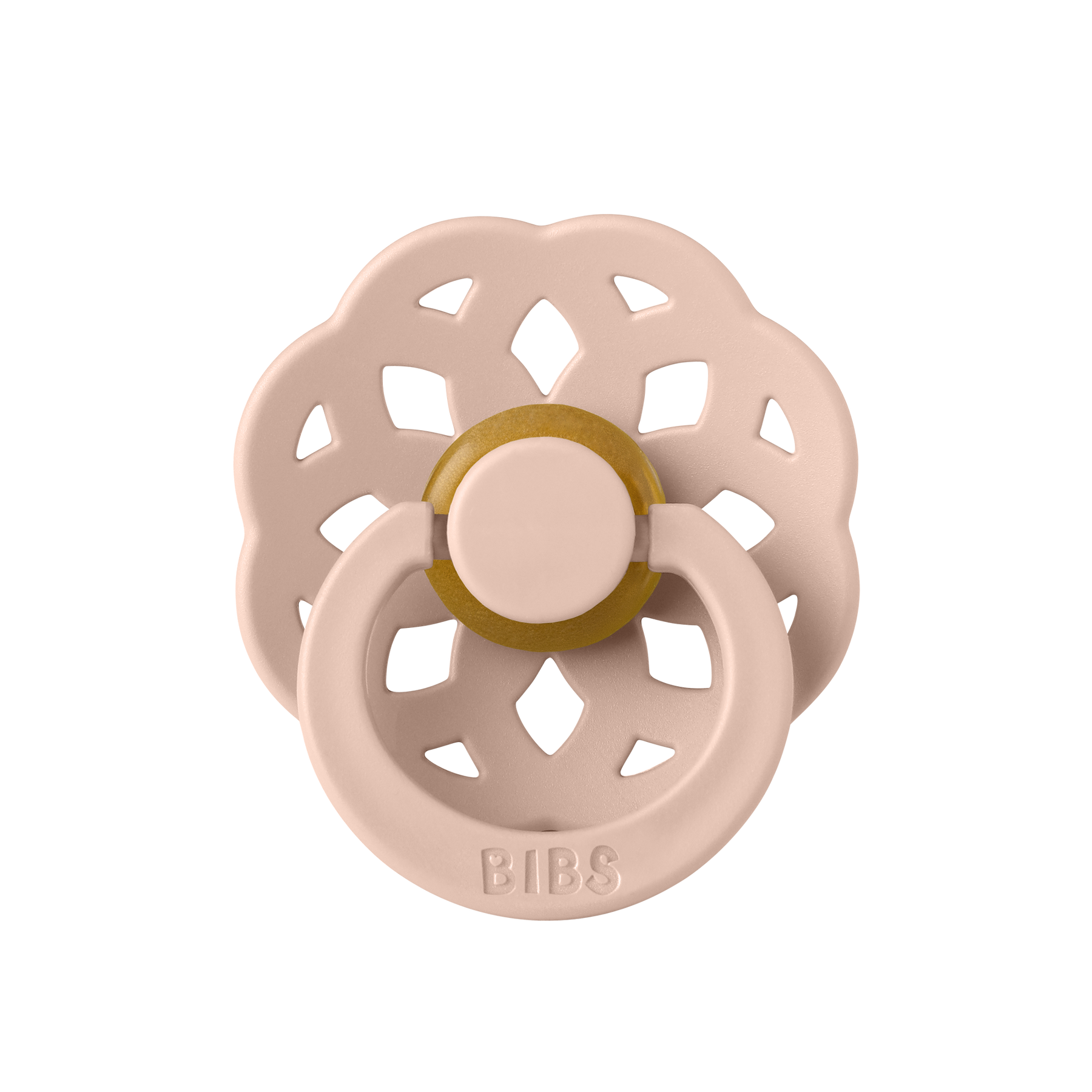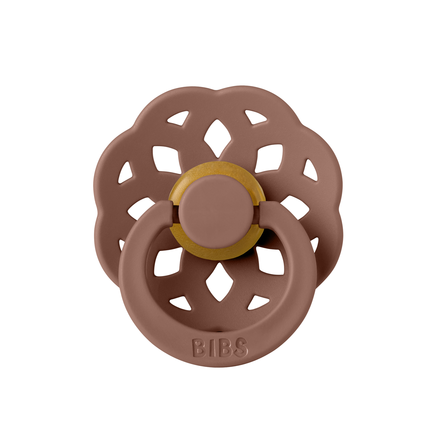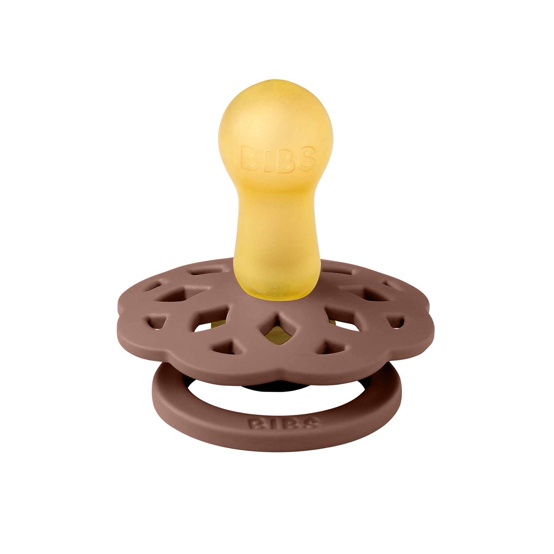 The BIBS Boheme Latex Pacifier in Blush/Woodchuck is inspired by a modern bohemian style. With natural elements and an organic silhouette. Boheme appears in a fresh, creative, and aesthetic design.