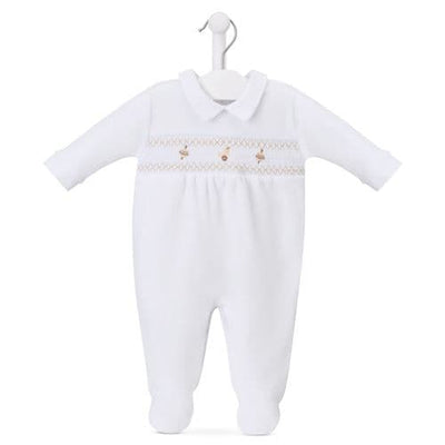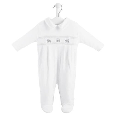 Dandelion White Little Tractor Smocked Sleepsuit