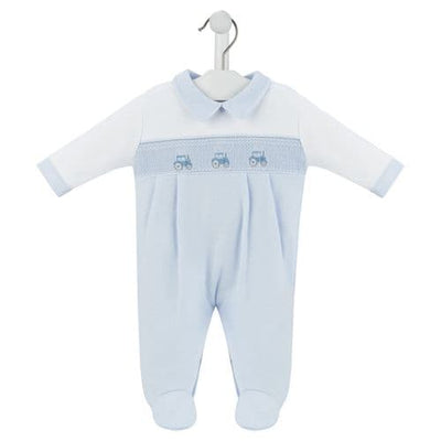 Dandelion Blue Little Tractor Smocked Sleepsuit