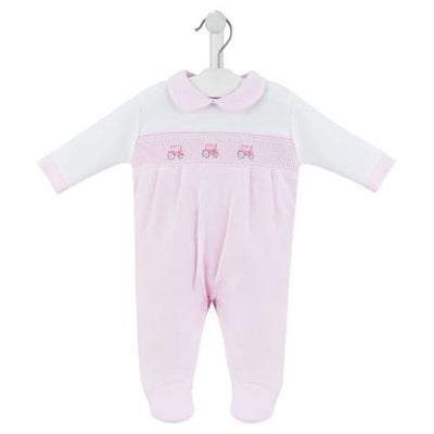 Dandelion Pink Little Tractor Smocked Sleepsuit