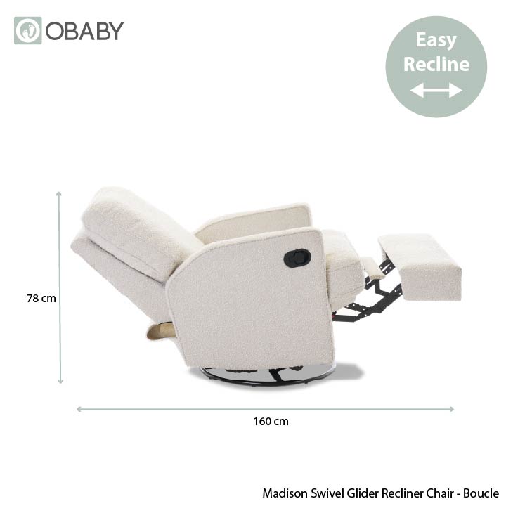 OBaby Madison Swivel Glider Recliner Chair - Bouclé Style