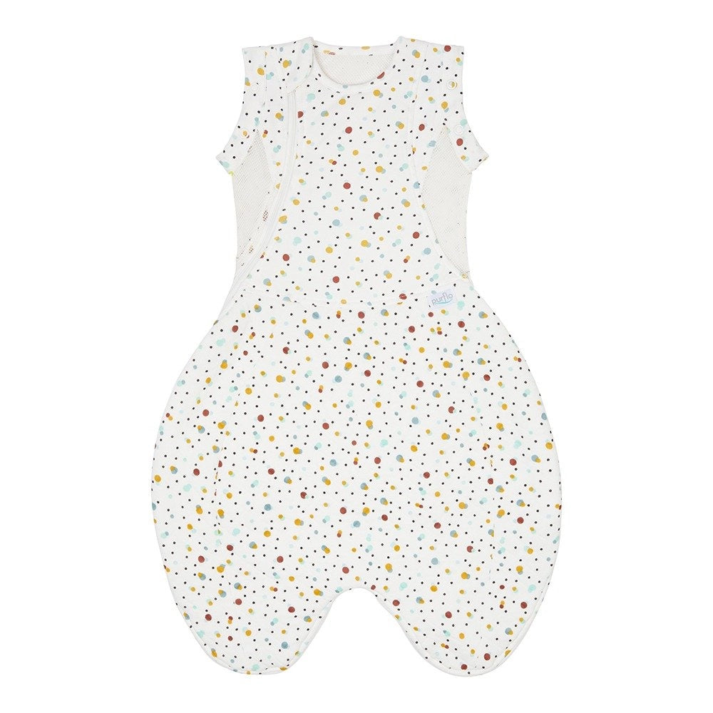 The Purflo Swaddle to Sleep Bag is a safe alternative to using blankets and loose bedding at sleep time and helps keep little ones at a safe temperature all year round. The versatile design of this baby sleep bag gives you the option to swaddle baby or let baby’s arms out – growing with your baby from a swaddle to a standard baby sleep bag. The 2.5 tog is perfect for all season use, allowing you to tailor the garments underneath to suit the temperature. The All Seasons Swaddle to Sleep Bag features the addition of Dupont™ Sorona® that is made from 37% plant based ingredients and is Oeko-Tex® 100 Class 1 Certified.