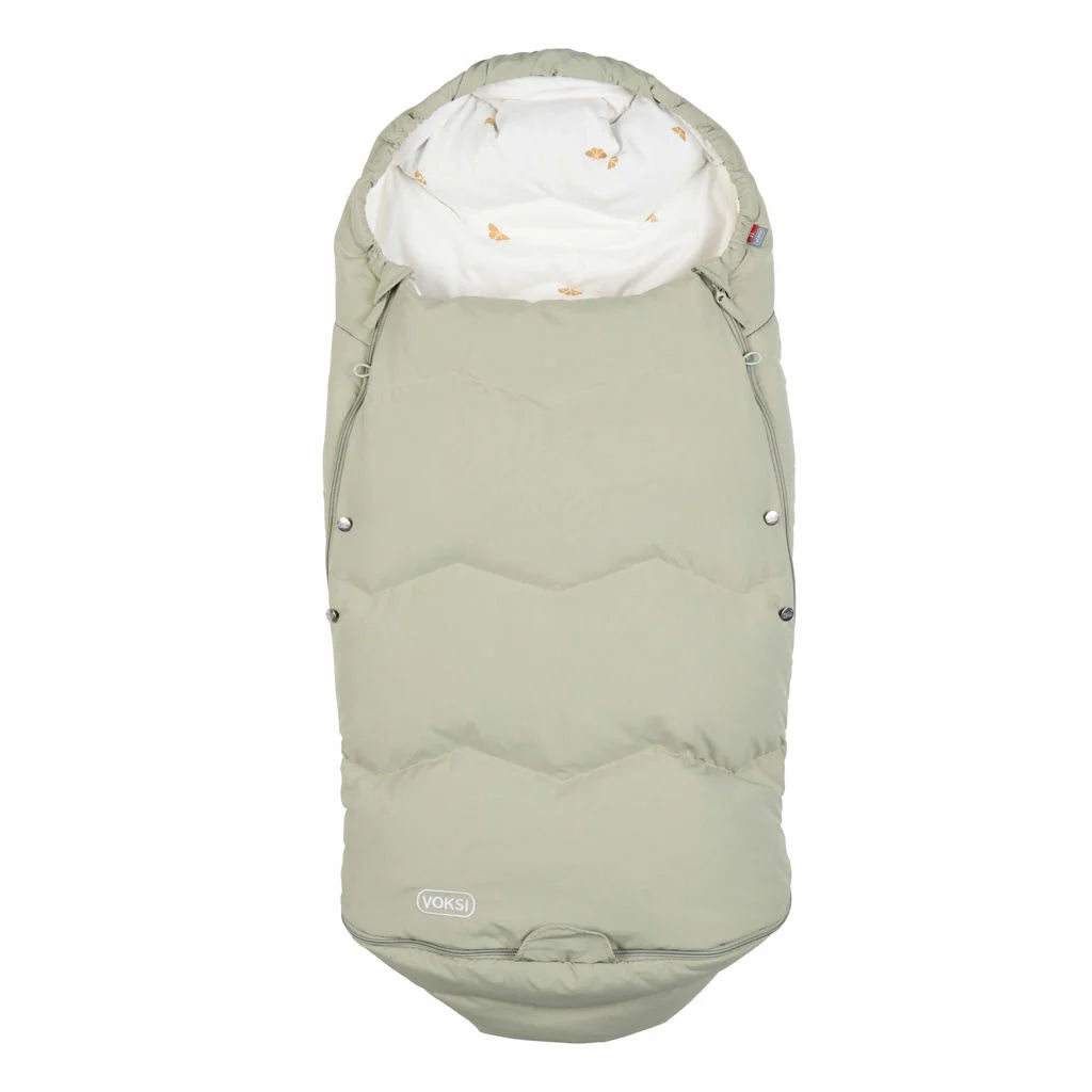 Voksi® Explorer consists of natural and quality-assured materials such as wool and down. The sleeping bag has wool in the back that ensures a comfortable temperature by leading moisture away from the child’s body. The sleeping bag is filled with down, which provides unique insulation and keeps the child warm.