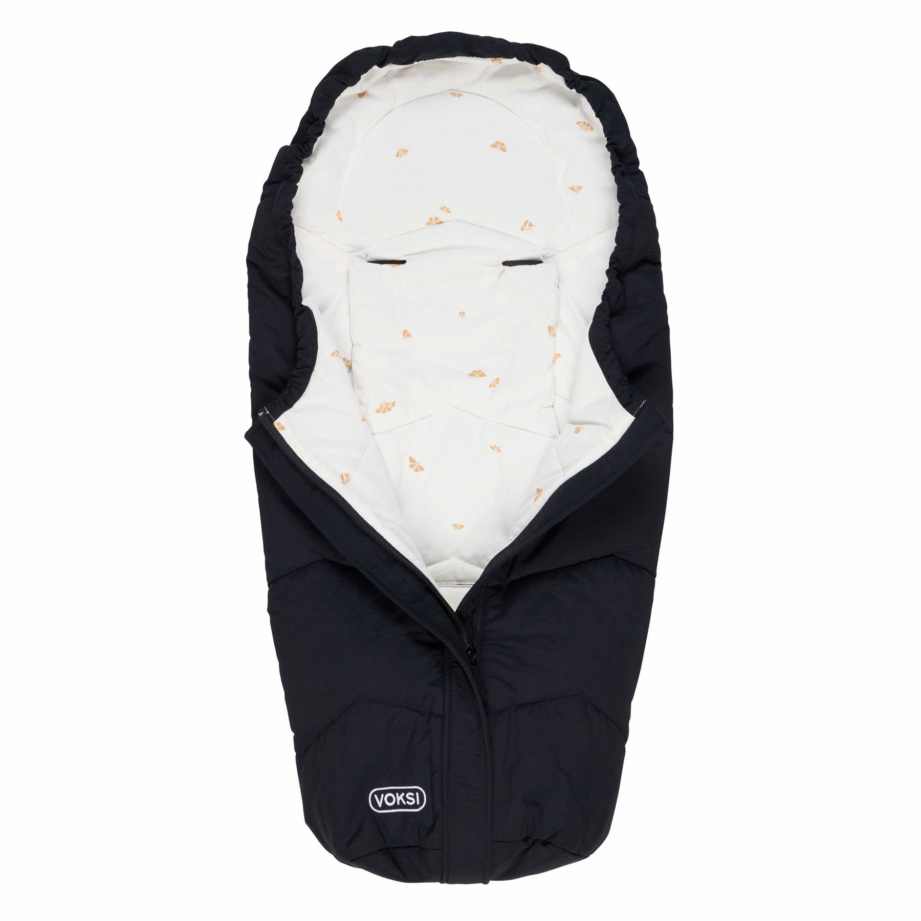 In a car seat, a good installation of the child and a proper tension of the harness is essential. When used in a car seat, Voksi® Move Light provides the insulation that replaces outerwear. In this way, the harness in the car seat can sit closer to the baby’s body than if they had insulated clothes covering their shoulders and upper bodies. A centred quick release zip fastener at the front provides easy access to the child in the car seat. The unique design of the back with harness openings ensures easy installation and good adaptation to the harness. When the temperature rises in the car it is easy to open the bag so the baby doesn't get too warm. Voksi products that complies with car seats, have been crash tested in combination with BeSafe car seats in the recommended rearward facing position. A good installation of the child is essential where extra attention is given to the tensioning of the harness, which requires more effort than without sleeping bag. A cord around the head area can be adjusted to suit your child’s needs and preferences in different weather conditions.